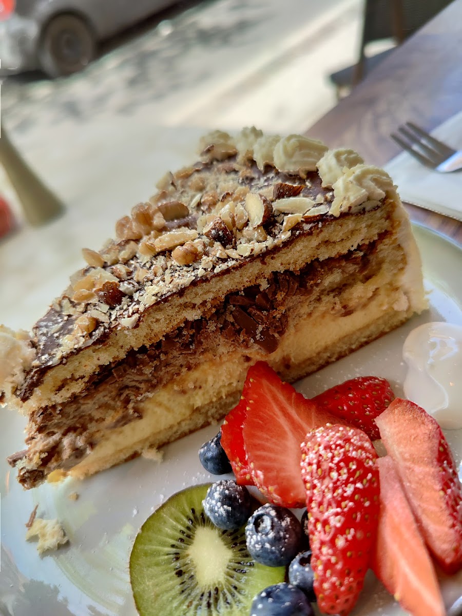 And let’s not forget the tempting selection of homemade cakes, including a delightful treat topped with white cream and fresh fruits that customers, like Anna Maria Kyritsaki, rave about. You might find the homemade yogurt selected by Tina Fisher, alongside a glass of freshly squeezed orange juice, truly refreshing. The café thoughtfully caters to various dietary preferences with an impressive range of vegetarian options, ensuring that everyone can find something they love.